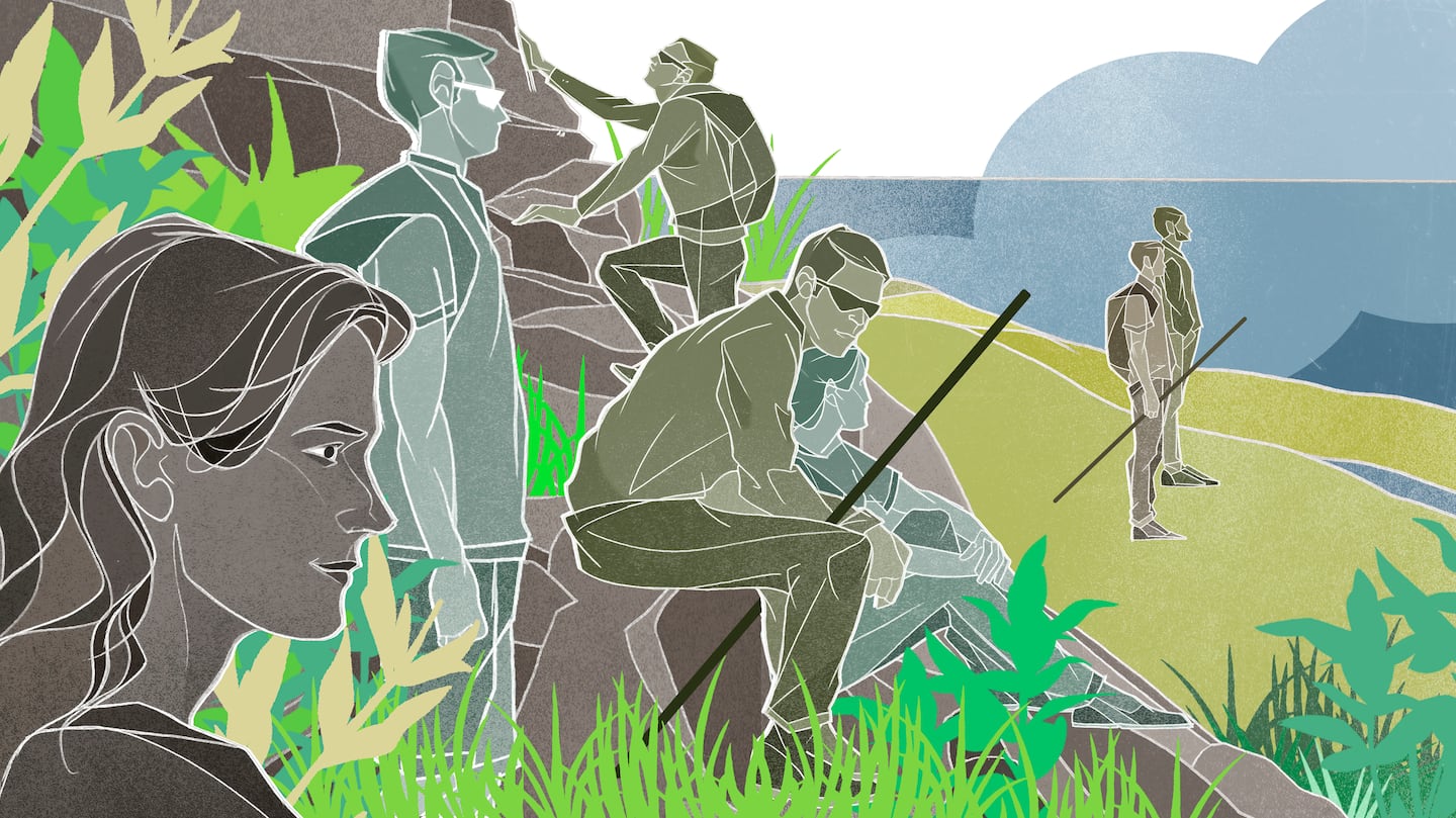 So when the dirt trail we had been following suddenly spilled us onto one of Acadia’s groomed and sun-splashed carriage roads, just in time for us to run into a passing trio of cyclists, it was a brief shock to the system. But even on the carriage roads, you can see wildness nibbling at the edges. We observed baby spruce trees bursting from the cracks in stone walls. Sharp-taloned raptors, possibly some visiting peregrine falcons, soared overhead as we closed in on Jordan Pond, feeling the mileage on our soles. And when the blue expanse of the pond finally revealed itself, we joined legions of fellow travelers gawking and Instagramming at the water’s edge.