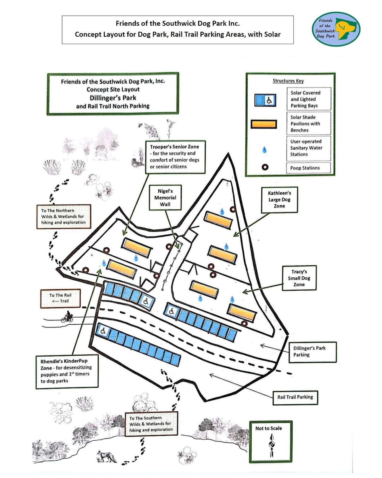 “The solar energy generation will be designated to the Town of Southwick electric accounts to offset minimal maintenance cost expectations. A well will be installed to provide irrigation and water to the dog drinking fountains, so no water costs will be borne by the taxpayers,” according to the proposal.