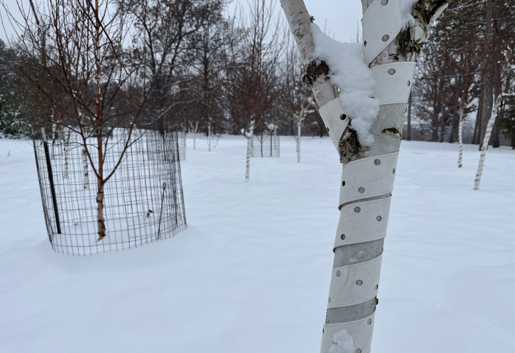Focus on younger, smaller plants. Older trees armor themselves with thick, tough bark and well-established shrubs can usually afford to lose a few twigs or buds to animals. “Put your effort into protecting things you planted within the last few years, or shrubs that were heavily damaged by animals in previous winters,” Yiesla said.