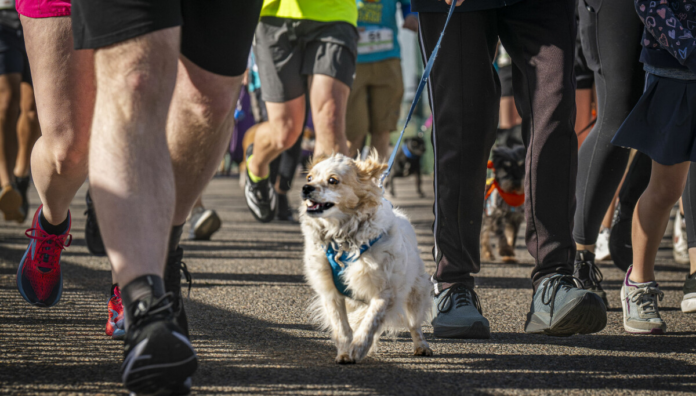 Hundreds of runners — on two and four legs — descended on Balloon Fiesta Park on Sunday for the 43rd Annual Doggie Dash & Dawdle. The event is a fundraiser for Animal Humane New Mexico, which uses the proceeds to support the at-risk and homeless animals the organization assists every year across the state. Pet owners ran with their dogs, and other participants rented adoptable dogs for the race.