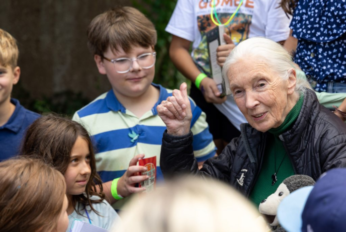On Saturday, families gathered inside the Kovler Lion House to hear the world-renowned scientist talk about Roots and Shoots, a community-led conservation program from the Jane Goodall Institute to empower youth with resources for practical solutions to environmental and conservation challenges.