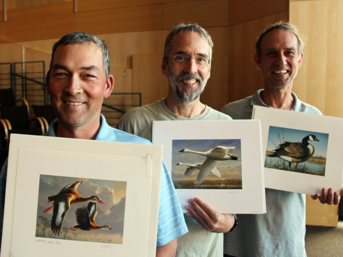 The judges for this year’s Federal Duck Stamp Contest were Judy Camuso, Gene Clater, Margie Crisp, Tom Landwehr (a former Minnesota Department of Natural Resources commissioner), Paul Padding and the alternate judge was David Turner.