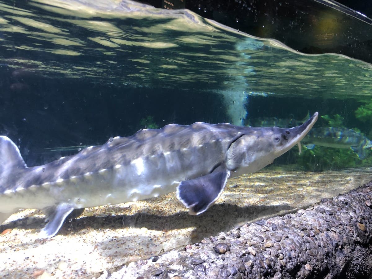 An Atlantic sturgeon on display at the Maritime Aquarium in Norwalk on Aug. 2, 2023, as part of the aquarium’s new sturgeon touch tank exhibit. (RJ Scofield/Patch Staff) Atlantic sturgeon on display at the Maritime Aquarium in Norwalk on Aug. 2, 2023, as part of the aquarium’s new sturgeon touch tank exhibit. (RJ Scofield/Patch Staff) An Atlantic sturgeon on display at the Maritime Aquarium in Norwalk on Aug. 2, 2023, as part of the aquarium’s new sturgeon touch tank exhibit. (RJ Scofield/Patch Staff) Educational signage posted next to the Maritime Aquarium’s new sturgeon touch tank exhibit on Aug. 2, 2023. (RJ Scofield/Patch Staff)