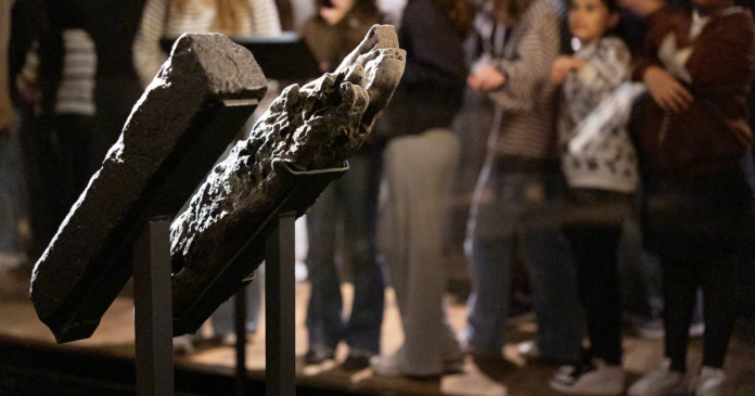 The 33-pound (15-kilogram) timber piece has been prominently displayed — seemingly suspended over a dark void, a ballast at its side — as part of a loan agreement to the museum since it opened in 2016. The agreement, examined by The Associated Press, was initially five years and then was extended another five in 2021, ending July 1.