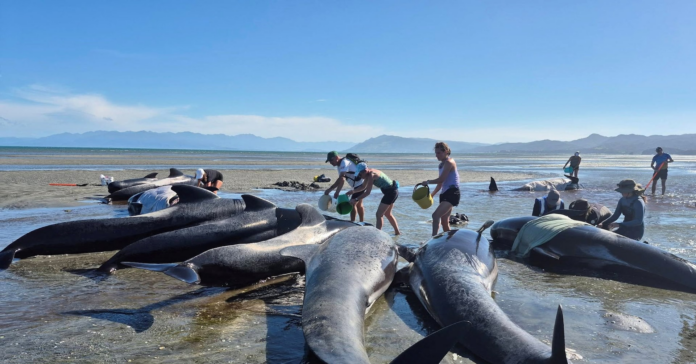 Some whales restrand at New Zealand’s Farewell Spit, six die